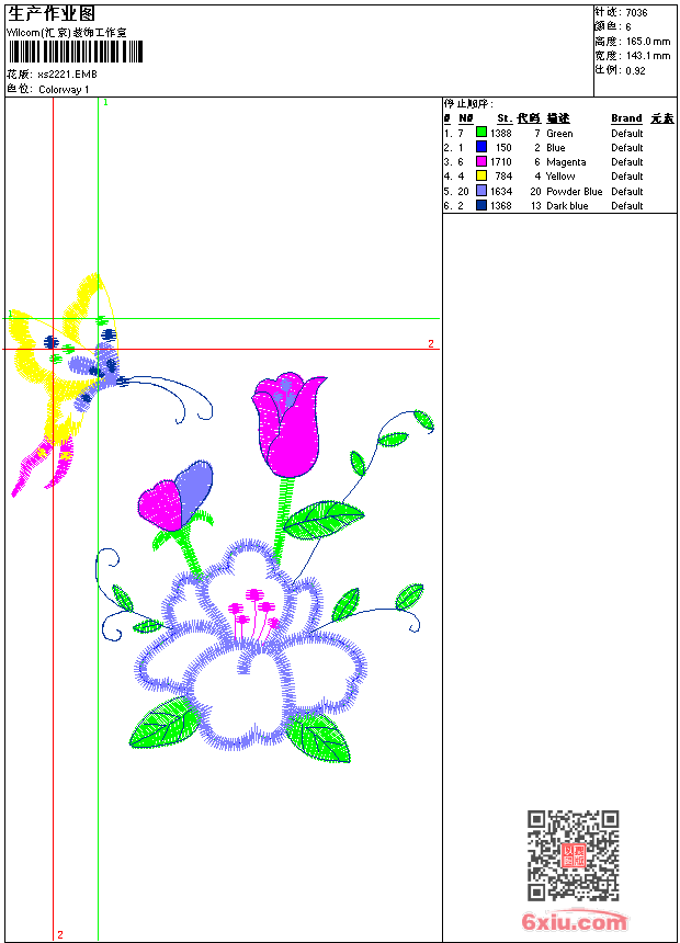 - emb花版参数: 大小:64.00 KB / 尺寸:143*165[毫米] / 针数:7036针 / 线色:6 / 格式:emb / 版本:9