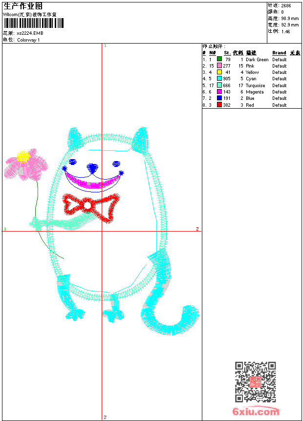 - 版带文件需绣花软件方可打开,可配色打印导出各种格式或直接上机绣。如无绣花软件可下载1:1模拟效果图。