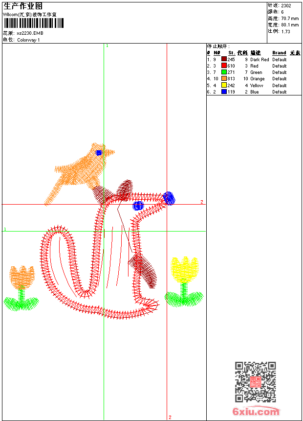 - 版带文件需绣花软件方可打开,可配色打印导出各种格式或直接上机绣。如无绣花软件可下载1:1模拟效果图。