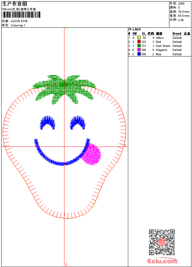 - emb花版参数: 大小:30.00 KB / 尺寸:66*77[毫米] / 针数:2080针 / 线色:5 / 格式:emb / 版本:9