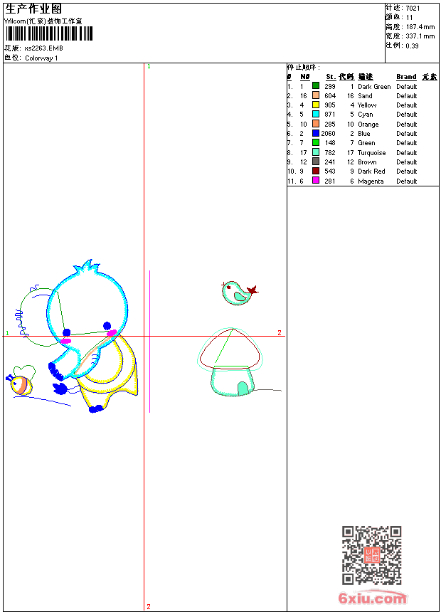 - 版带文件需绣花软件方可打开,可配色打印导出各种格式或直接上机绣。如无绣花软件可下载1:1模拟效果图。