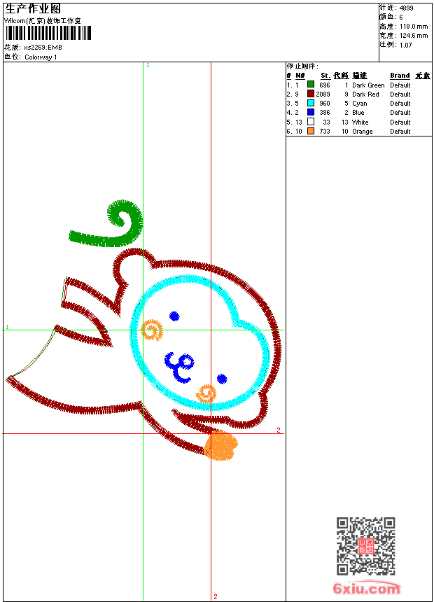 - 版带文件需绣花软件方可打开,可配色打印导出各种格式或直接上机绣。如无绣花软件可下载1:1模拟效果图。