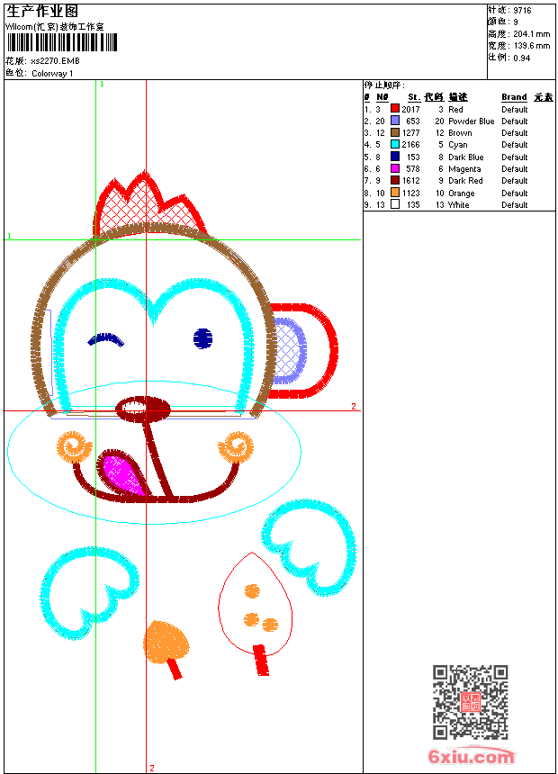 - 版带文件需绣花软件方可打开,可配色打印导出各种格式或直接上机绣。如无绣花软件可下载1:1模拟效果图。