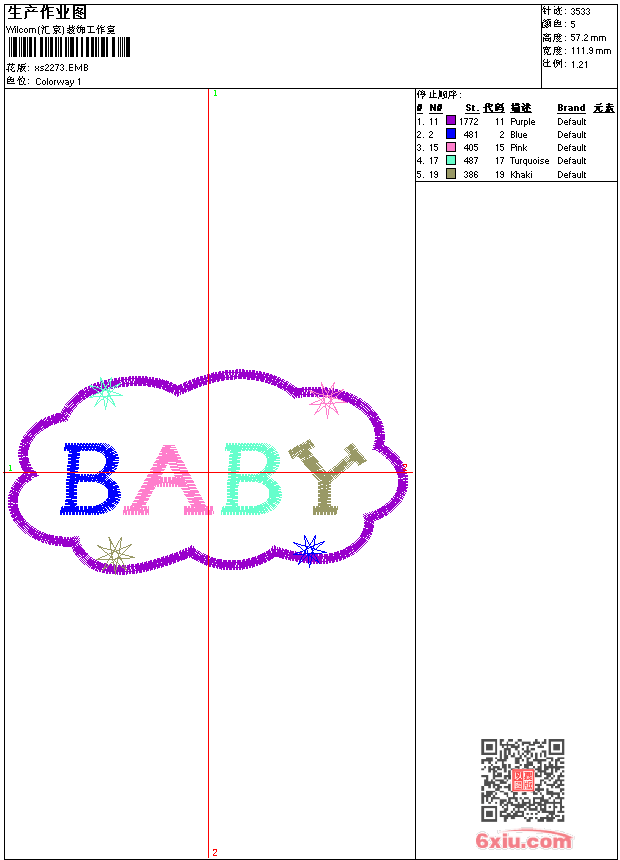 - emb花版参数: 大小:32.00 KB / 尺寸:112*57[毫米] / 针数:3533针 / 线色:5 / 格式:emb / 版本:9