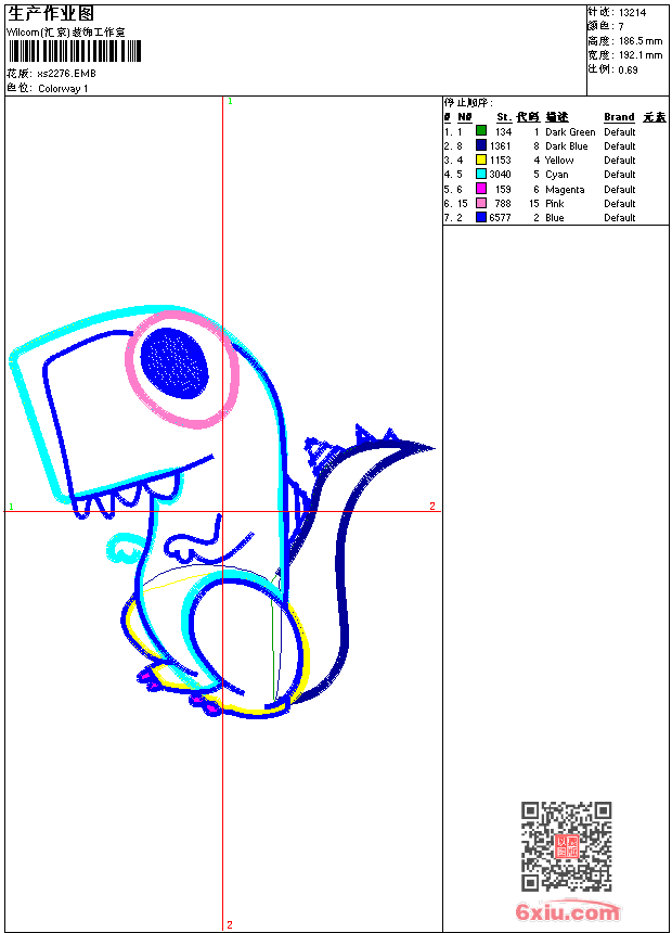 - 版带文件需绣花软件方可打开,可配色打印导出各种格式或直接上机绣。如无绣花软件可下载1:1模拟效果图。