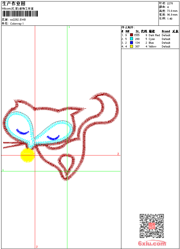 - 版带文件需绣花软件方可打开,可配色打印导出各种格式或直接上机绣。如无绣花软件可下载1:1模拟效果图。