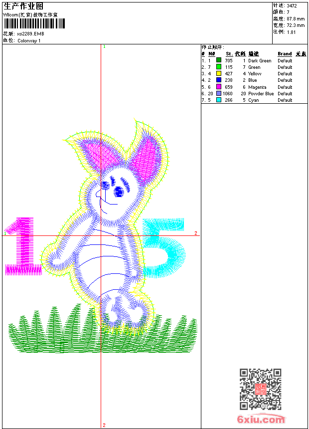 - 版带文件需绣花软件方可打开,可配色打印导出各种格式或直接上机绣。如无绣花软件可下载1:1模拟效果图。