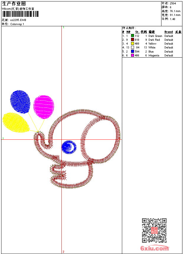 - 版带文件需绣花软件方可打开,可配色打印导出各种格式或直接上机绣。如无绣花软件可下载1:1模拟效果图。