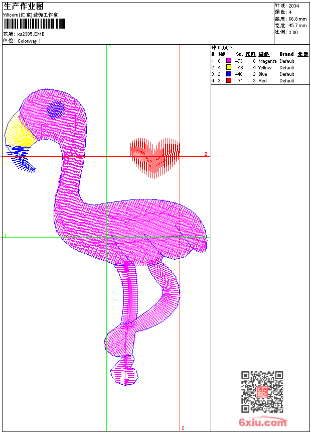 - emb花版参数: 大小:26.00 KB / 尺寸:46*67[毫米] / 针数:2034针 / 线色:4 / 格式:emb / 版本:9