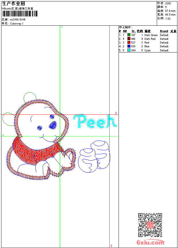 - 版带文件需绣花软件方可打开,可配色打印导出各种格式或直接上机绣。如无绣花软件可下载1:1模拟效果图。
