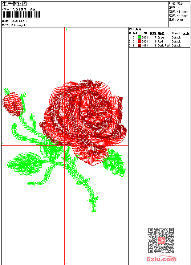- 版带文件需绣花软件方可打开,可配色打印导出各种格式或直接上机绣。如无绣花软件可下载1:1模拟效果图。