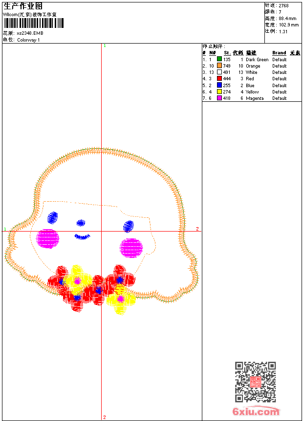 - 版带文件需绣花软件方可打开,可配色打印导出各种格式或直接上机绣。如无绣花软件可下载1:1模拟效果图。