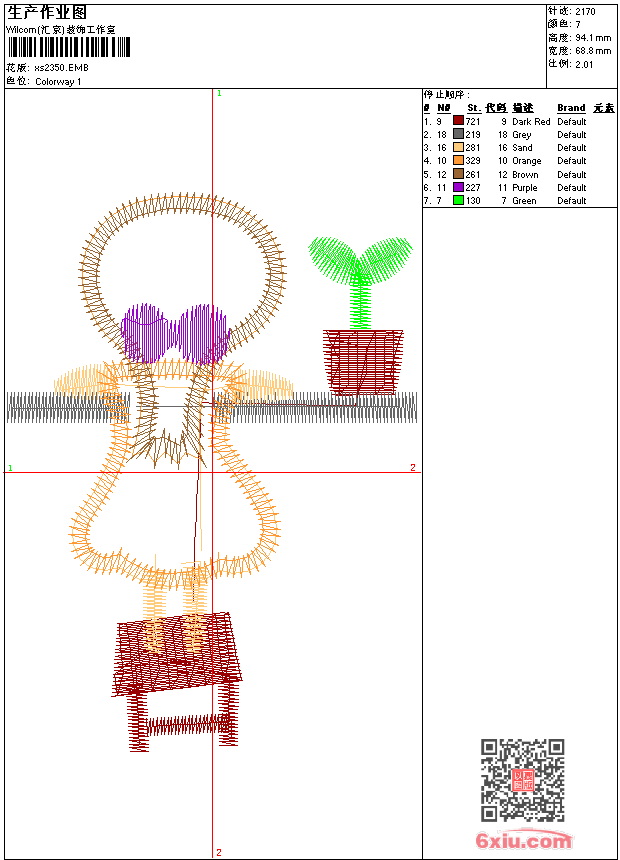 - 版带文件需绣花软件方可打开,可配色打印导出各种格式或直接上机绣。如无绣花软件可下载1:1模拟效果图。