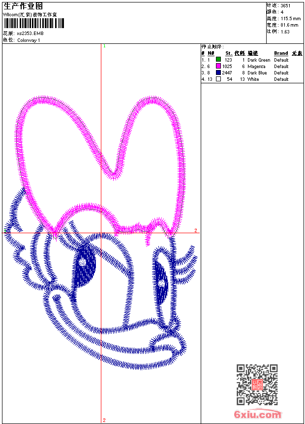 - 版带文件需绣花软件方可打开,可配色打印导出各种格式或直接上机绣。如无绣花软件可下载1:1模拟效果图。