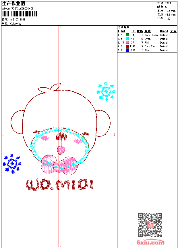 - 版带文件需绣花软件方可打开,可配色打印导出各种格式或直接上机绣。如无绣花软件可下载1:1模拟效果图。
