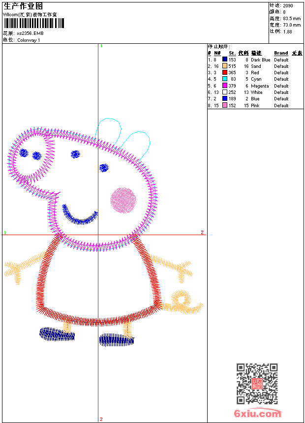 - 版带文件需绣花软件方可打开,可配色打印导出各种格式或直接上机绣。如无绣花软件可下载1:1模拟效果图。