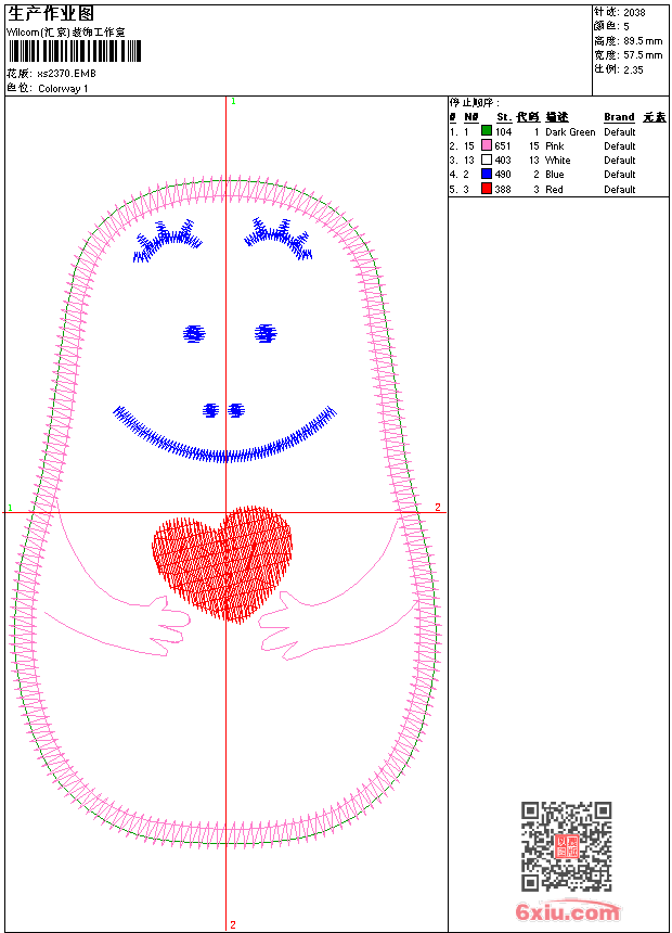 - emb花版参数: 大小:31.00 KB / 尺寸:79*90[毫米] / 针数:2063针 / 线色:5 / 格式:emb / 版本:9