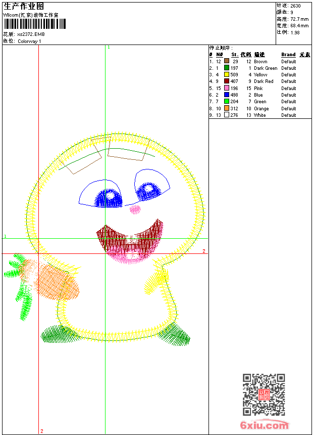 - 版带文件需绣花软件方可打开,可配色打印导出各种格式或直接上机绣。如无绣花软件可下载1:1模拟效果图。