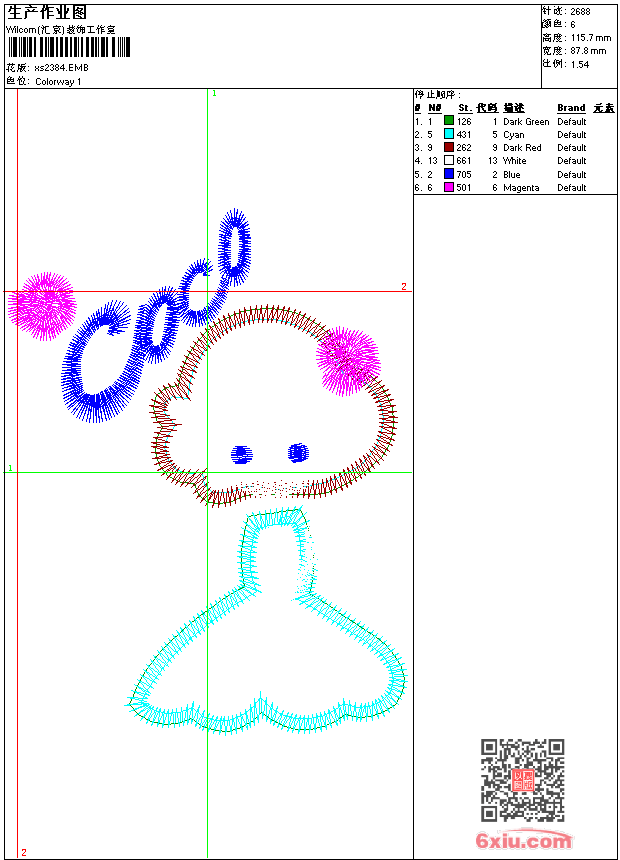 - 版带文件需绣花软件方可打开,可配色打印导出各种格式或直接上机绣。如无绣花软件可下载1:1模拟效果图。