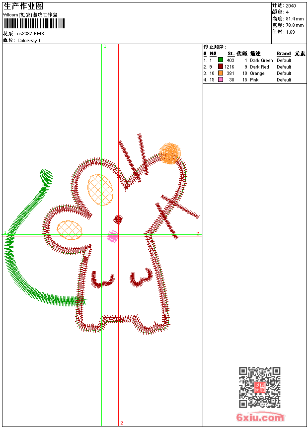 - 版带文件需绣花软件方可打开,可配色打印导出各种格式或直接上机绣。如无绣花软件可下载1:1模拟效果图。