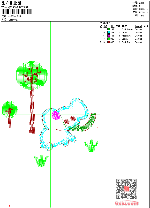 - 版带文件需绣花软件方可打开,可配色打印导出各种格式或直接上机绣。如无绣花软件可下载1:1模拟效果图。