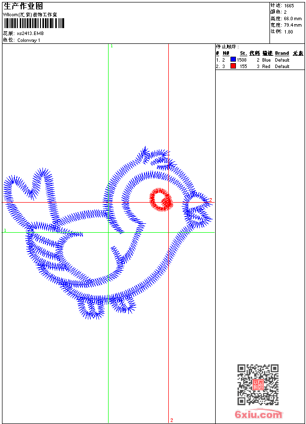 - emb花版参数: 大小:25.00 KB / 尺寸:79*66[毫米] / 针数:1665针 / 线色:2 / 格式:emb / 版本:9