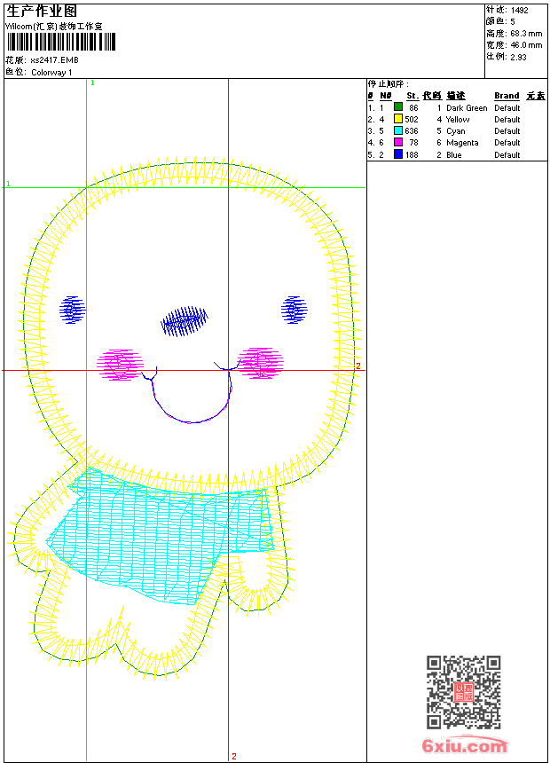 - 版带文件需绣花软件方可打开,可配色打印导出各种格式或直接上机绣。如无绣花软件可下载1:1模拟效果图。