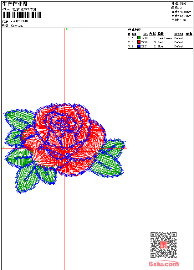 - 版带文件需绣花软件方可打开,可配色打印导出各种格式或直接上机绣。如无绣花软件可下载1:1模拟效果图。