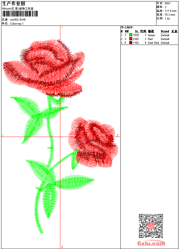 - 版带文件需绣花软件方可打开,可配色打印导出各种格式或直接上机绣。如无绣花软件可下载1:1模拟效果图。