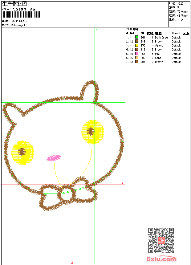 - 版带文件需绣花软件方可打开,可配色打印导出各种格式或直接上机绣。如无绣花软件可下载1:1模拟效果图。