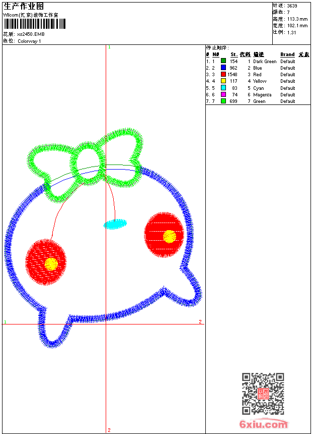 - 版带文件需绣花软件方可打开,可配色打印导出各种格式或直接上机绣。如无绣花软件可下载1:1模拟效果图。