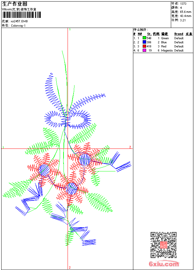 - emb花版参数: 大小:27.00 KB / 尺寸:43*66[毫米] / 针数:1373针 / 线色:4 / 格式:emb / 版本:9