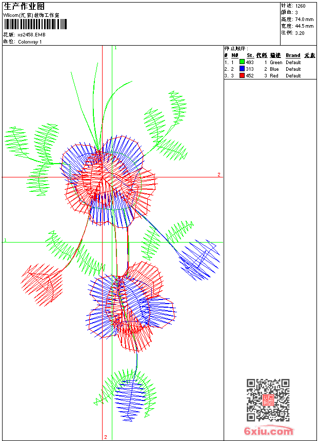 - emb花版参数: 大小:25.50 KB / 尺寸:44*74[毫米] / 针数:1260针 / 线色:3 / 格式:emb / 版本:9