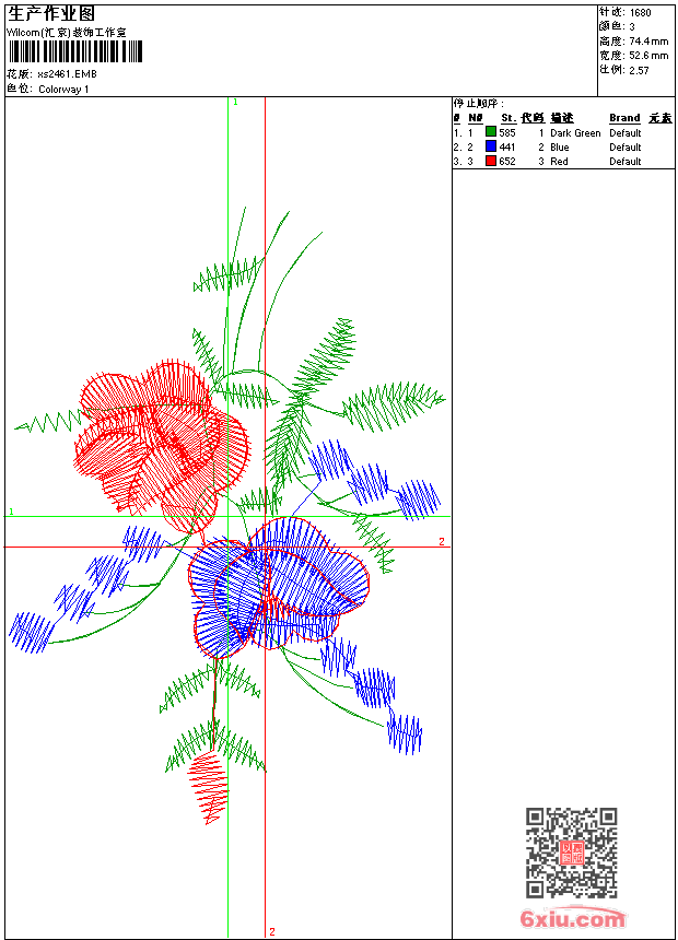 - 版带文件需绣花软件方可打开,可配色打印导出各种格式或直接上机绣。如无绣花软件可下载1:1模拟效果图。