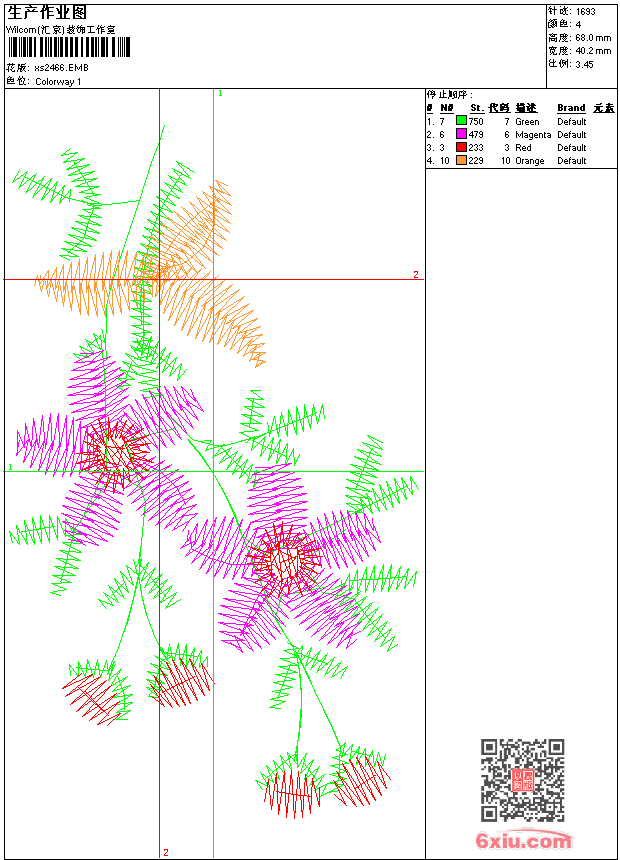 - emb花版参数: 大小:30.50 KB / 尺寸:40*68[毫米] / 针数:1693针 / 线色:4 / 格式:emb / 版本:9