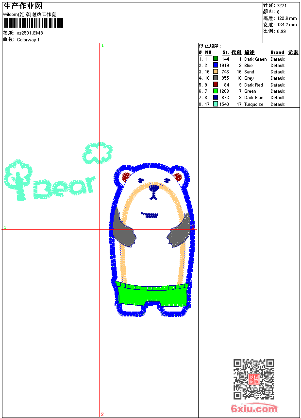 - 版带文件需绣花软件方可打开,可配色打印导出各种格式或直接上机绣。如无绣花软件可下载1:1模拟效果图。