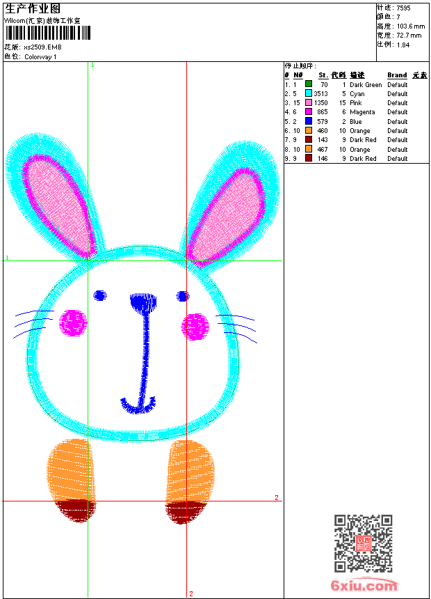 - 版带文件需绣花软件方可打开,可配色打印导出各种格式或直接上机绣。如无绣花软件可下载1:1模拟效果图。