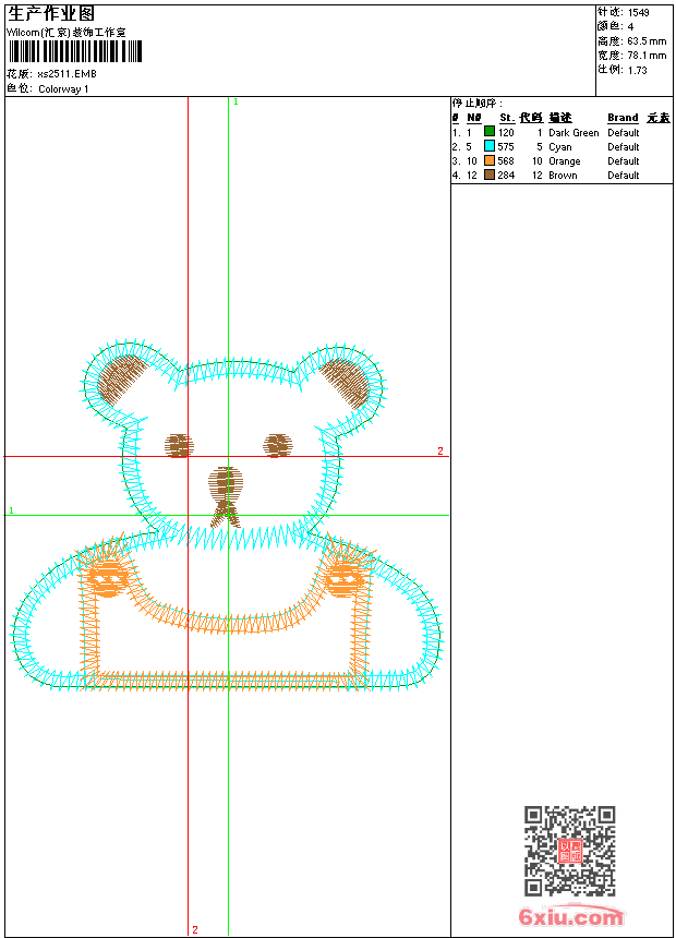 - 版带文件需绣花软件方可打开,可配色打印导出各种格式或直接上机绣。如无绣花软件可下载1:1模拟效果图。
