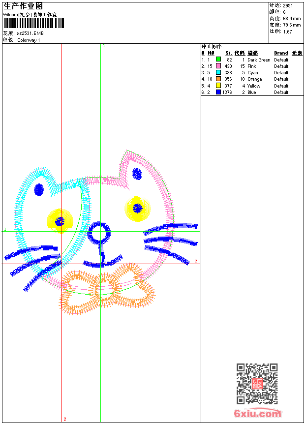 - 版带文件需绣花软件方可打开,可配色打印导出各种格式或直接上机绣。如无绣花软件可下载1:1模拟效果图。