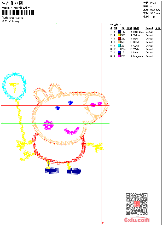 - 版带文件需绣花软件方可打开,可配色打印导出各种格式或直接上机绣。如无绣花软件可下载1:1模拟效果图。