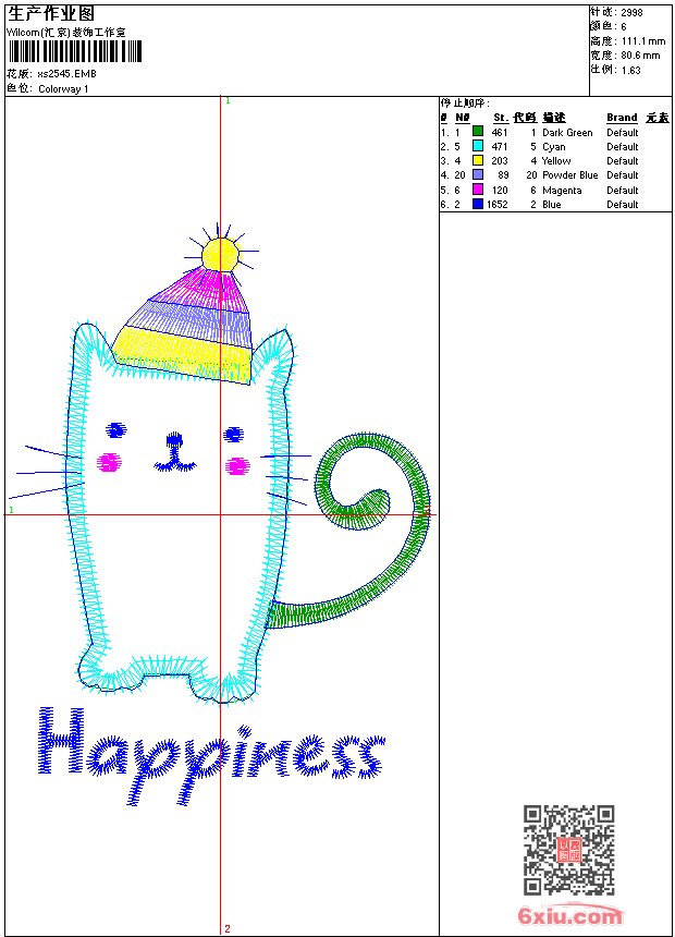 - 版带文件需绣花软件方可打开,可配色打印导出各种格式或直接上机绣。如无绣花软件可下载1:1模拟效果图。