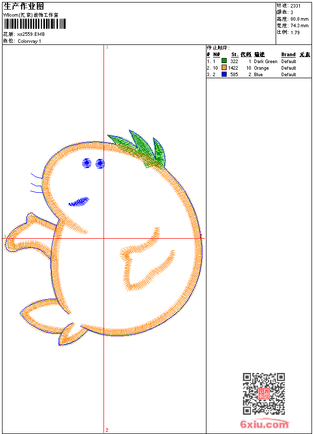 - 版带文件需绣花软件方可打开,可配色打印导出各种格式或直接上机绣。如无绣花软件可下载1:1模拟效果图。