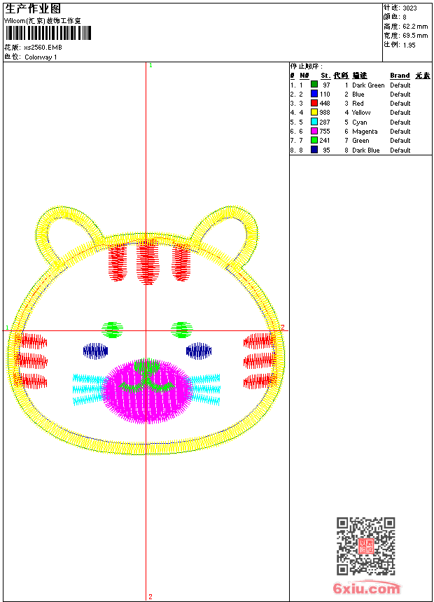 - 版带文件需绣花软件方可打开,可配色打印导出各种格式或直接上机绣。如无绣花软件可下载1:1模拟效果图。