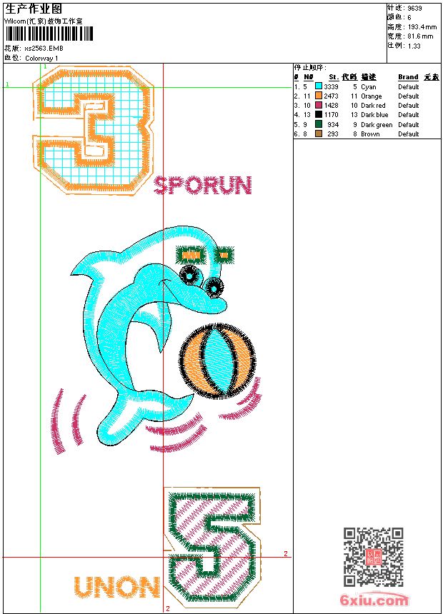 - emb花版参数: 大小:74.00 KB / 尺寸:82*193[毫米] / 针数:9643针 / 线色:6 / 格式:emb / 版本:9