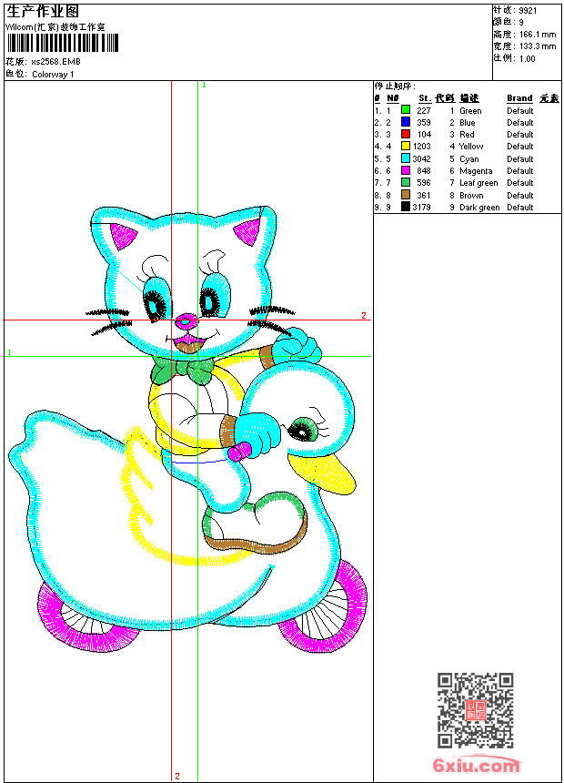 - 版带文件需绣花软件方可打开,可配色打印导出各种格式或直接上机绣。如无绣花软件可下载1:1模拟效果图。