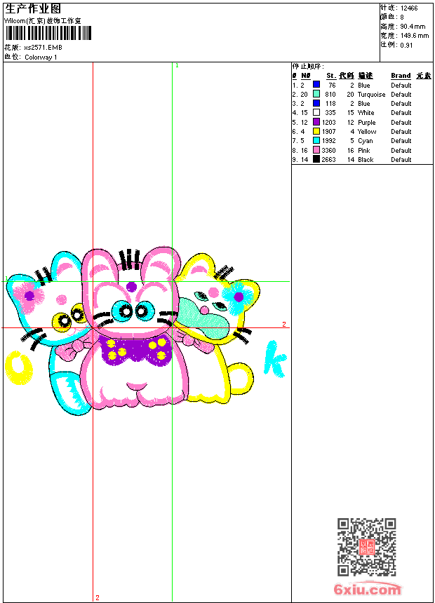 - 版带文件需绣花软件方可打开,可配色打印导出各种格式或直接上机绣。如无绣花软件可下载1:1模拟效果图。