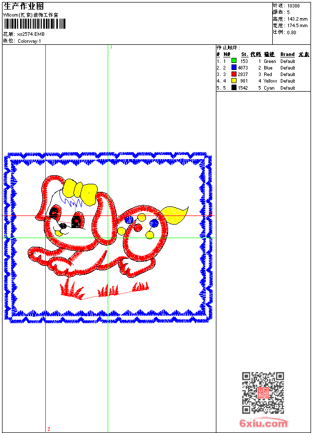 - emb花版参数: 大小:33.00 KB / 尺寸:175*143[毫米] / 针数:10388针 / 线色:5 / 格式:emb / 版本:9