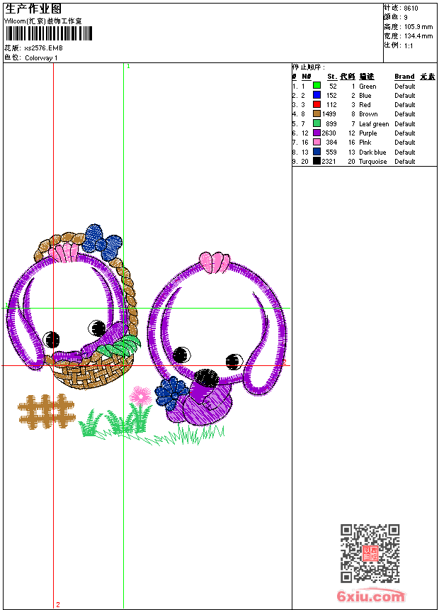 - 版带文件需绣花软件方可打开,可配色打印导出各种格式或直接上机绣。如无绣花软件可下载1:1模拟效果图。