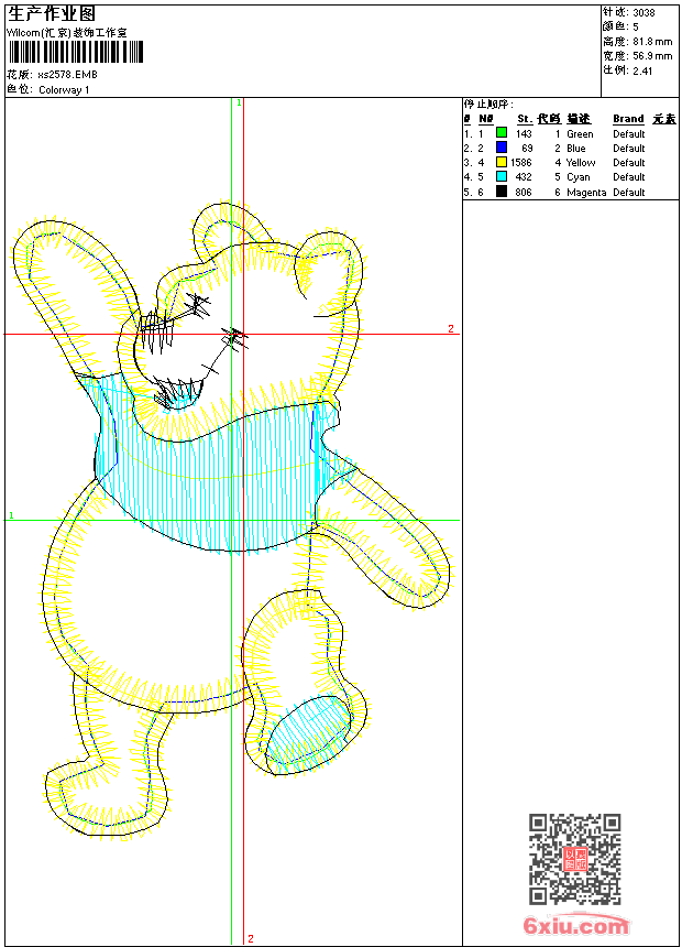- emb花版参数: 大小:26.00 KB / 尺寸:57*82[毫米] / 针数:3038针 / 线色:5 / 格式:emb / 版本:9