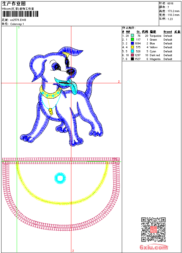 - emb花版参数: 大小:48.50 KB / 尺寸:110*173[毫米] / 针数:6016针 / 线色:7 / 格式:emb / 版本:9